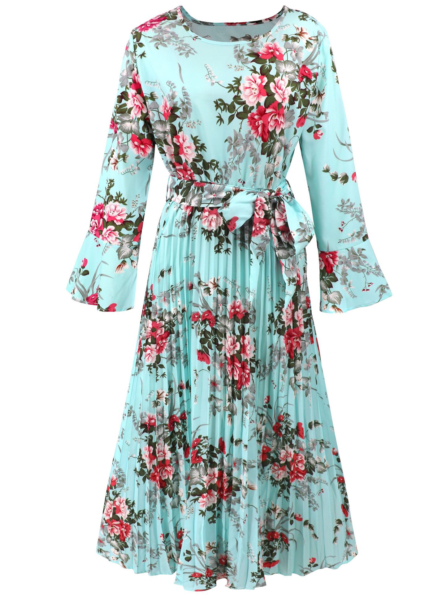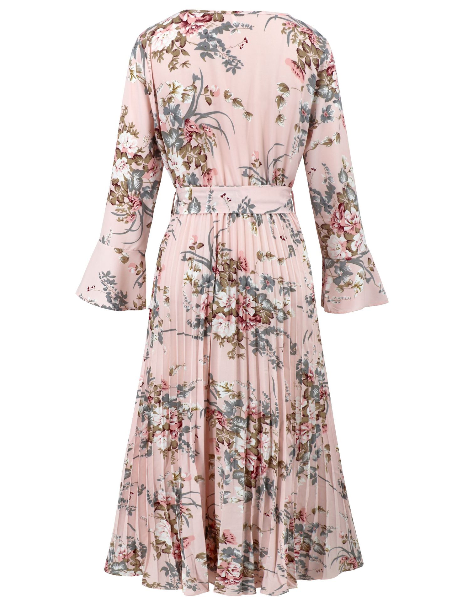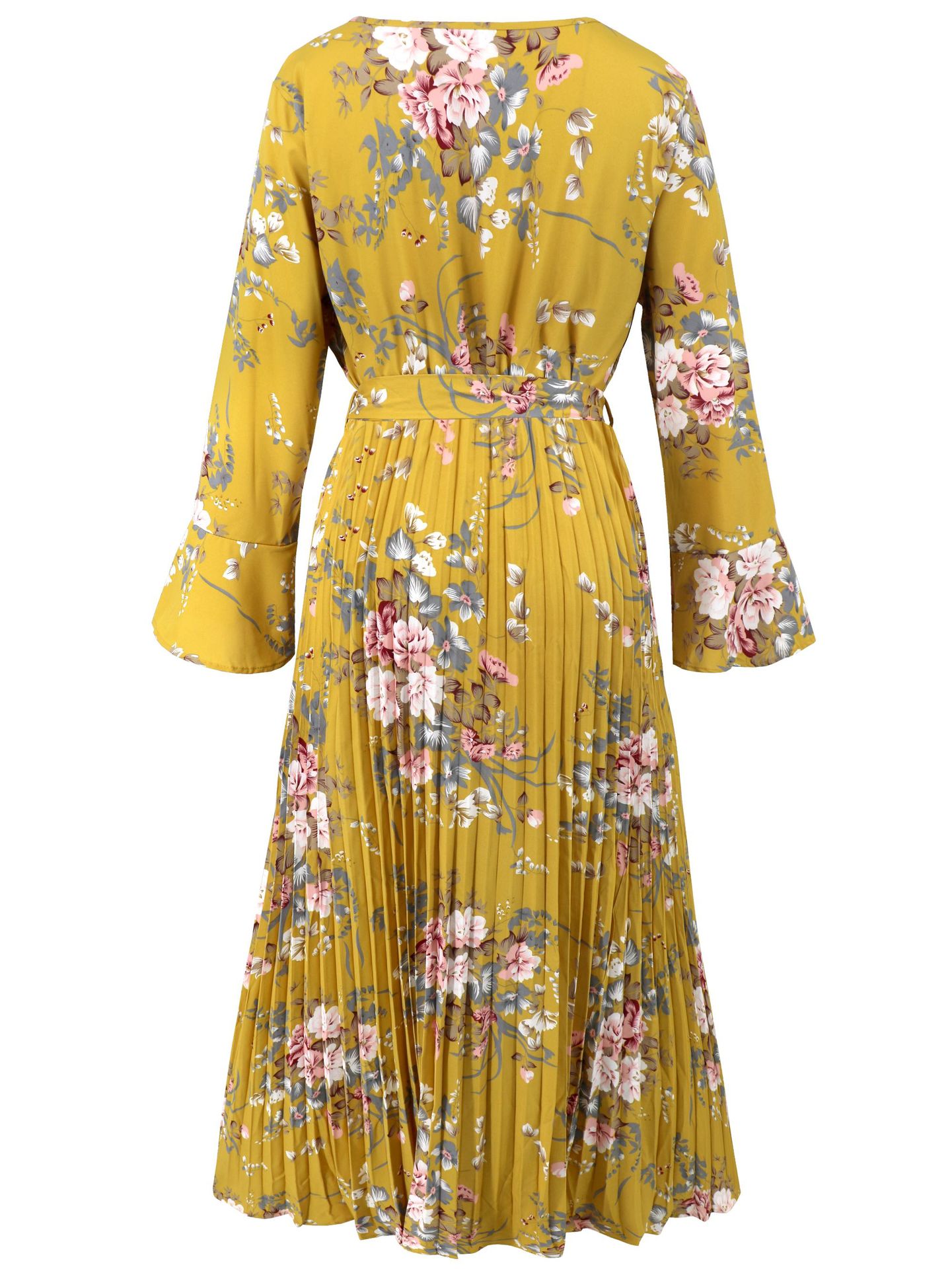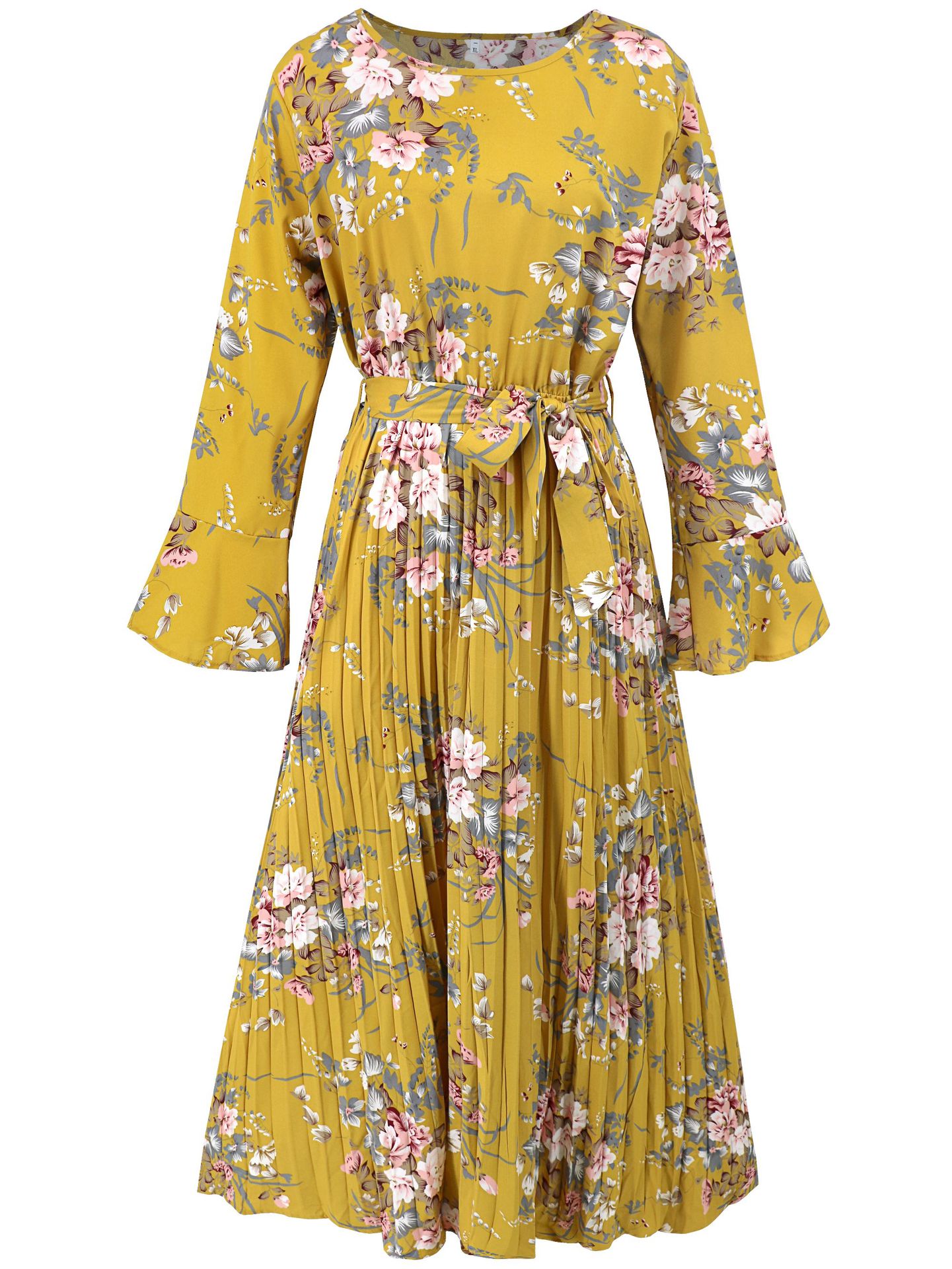 Bell-Sleeved Bohemian Pleated Print Dress for Women