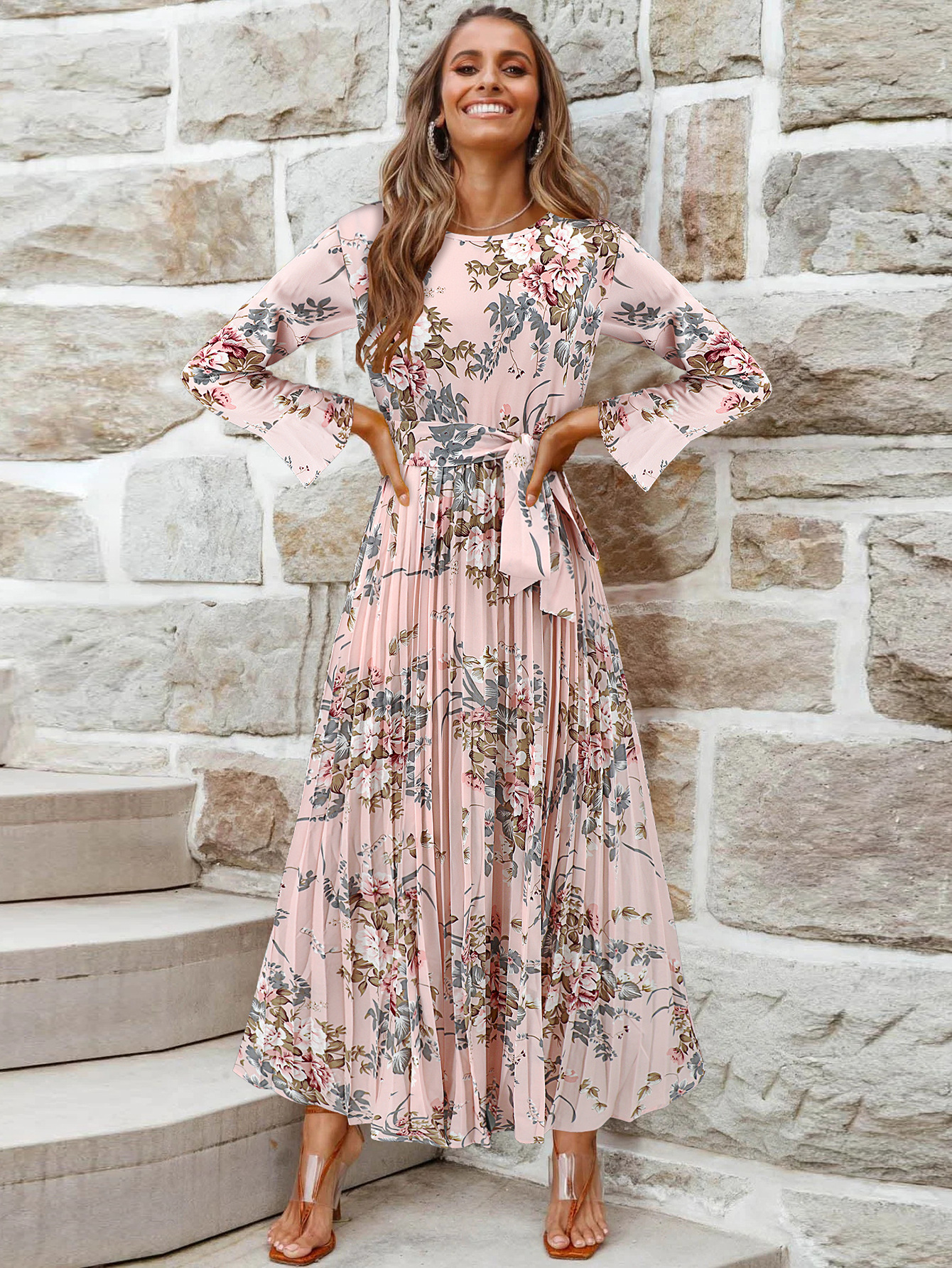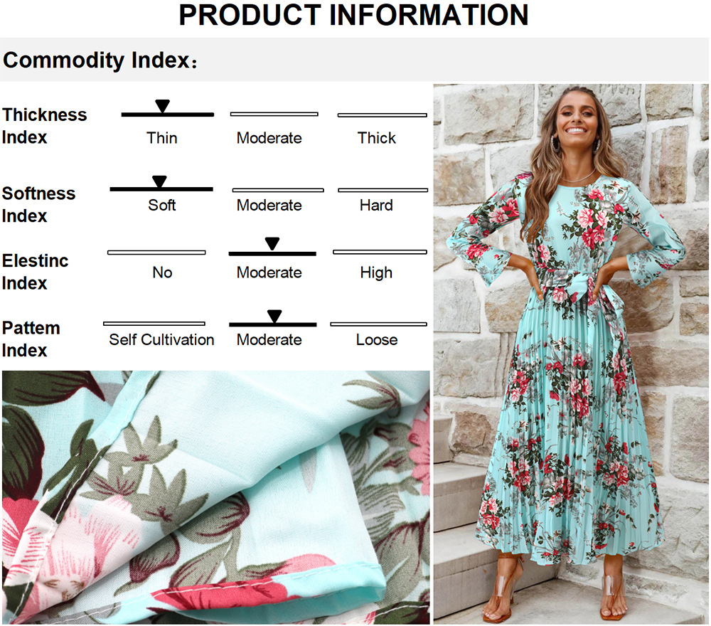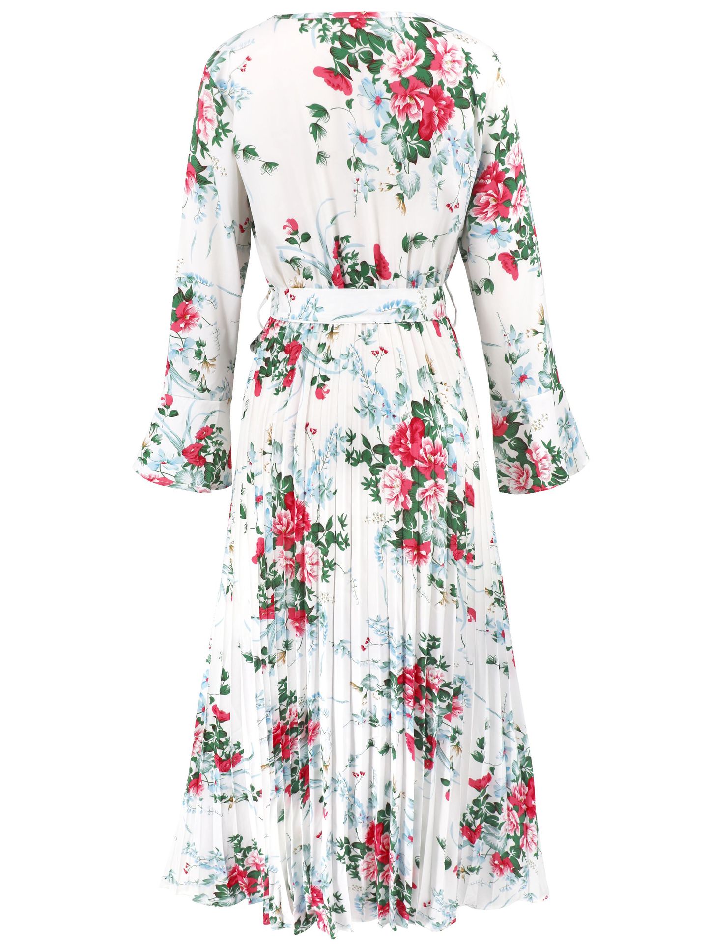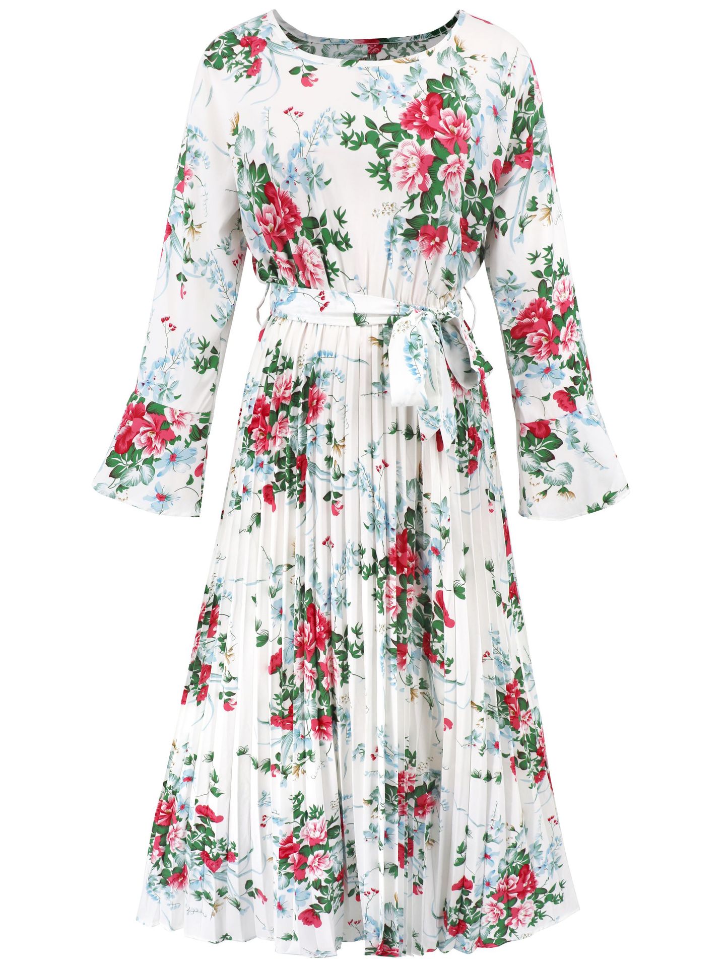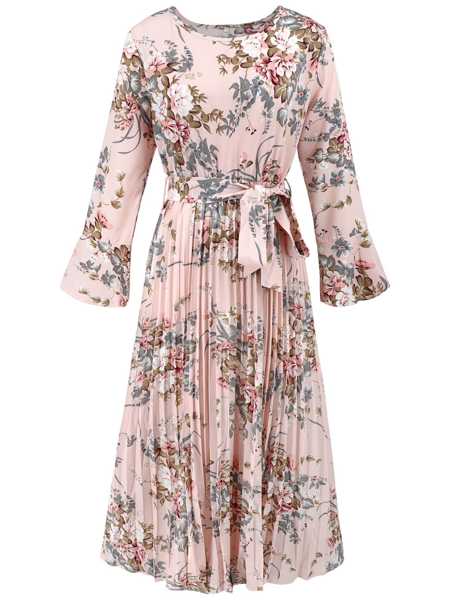 Bell-Sleeved Bohemian Pleated Print Dress for Women